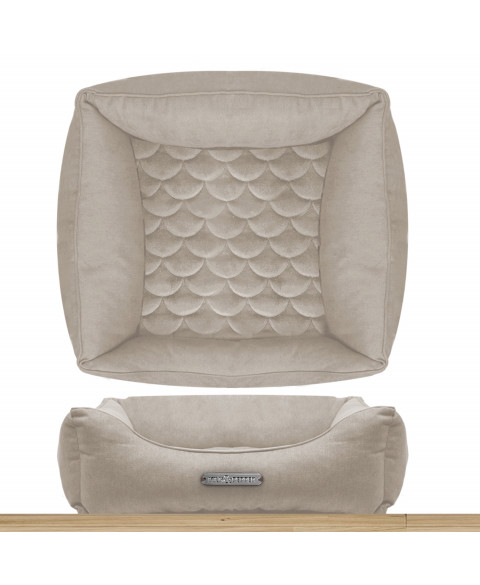 • Very chic and soft - overstitched velvet with a scale pattern on the cushion part and in simple velvet (not overstitched) on the sides