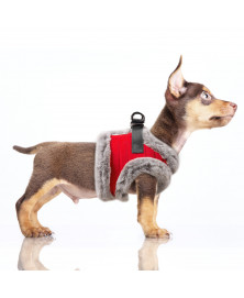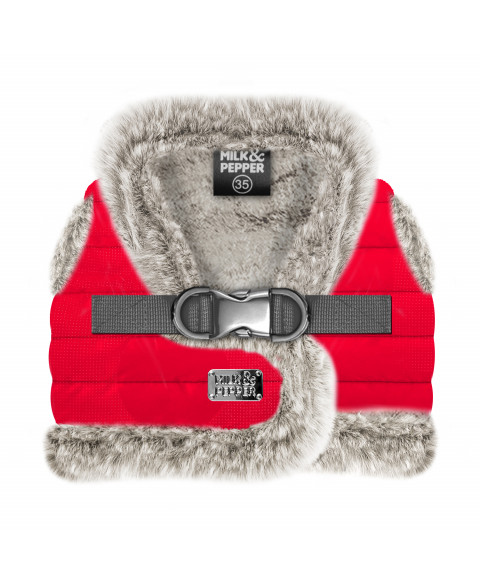 • Red nylon quilted puff jacket harness with microdots overprinting created especially for small and medium dogs (water-repellent)