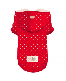 • Red fleece material with « little pink powdered hearts » exclusive design