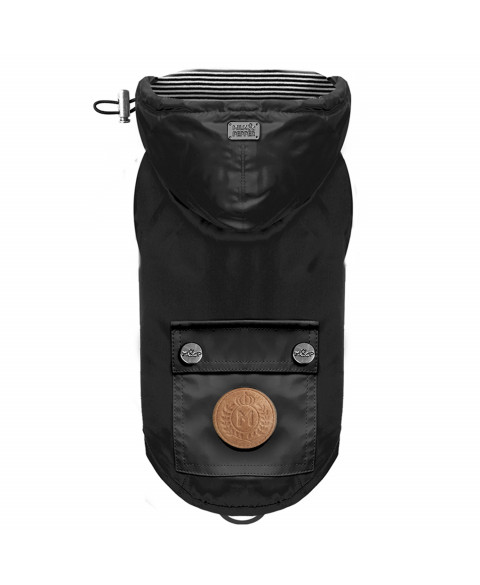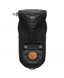 • Black raincoat in soft and supple coated mesh with removable and adjustable belly part