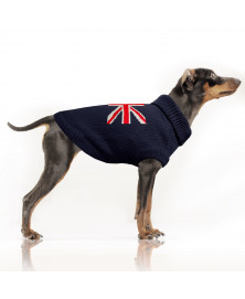 • Navy blue sweater with red/off white jacquard Union Jack flag
