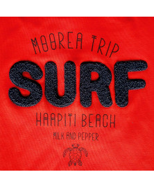 • « Moorea Trip Surf » visual in silk-screen printing and navy curl embroidery