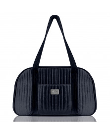 • Fully-closed carry-bag in shiny quilted velvet and ark blue mesh on top