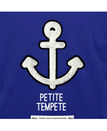 • navy felt anchor and off-white Chenille Embrodery on the back
