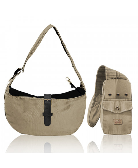• Beige or Khaki coton gabardine adjustable shoulder bag