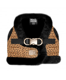 • Harnais « doudoune » en nylon matelassé camel imprimé pois noirs  (traité déperlant)  créé spécialement pour les petits chiens et les chiens moyens