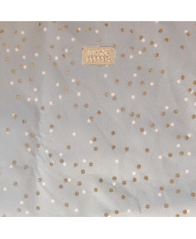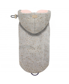 • Matière waterproof taupe à pois irréguliers rose et paillettes dorées (imprimé exclusif)
