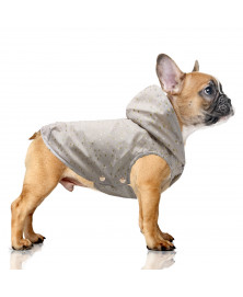 • Matière waterproof taupe à pois irréguliers rose et paillettes dorées (imprimé exclusif)