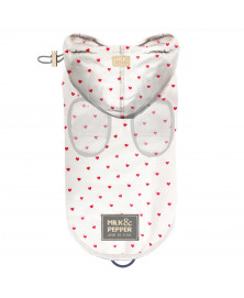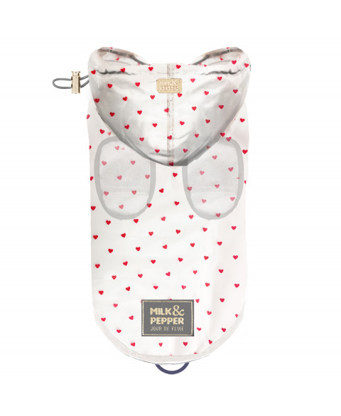 • Matière waterproof transparente avec imprimé « petits cœurs » rouges (imprimé exclusif)