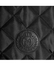 • Une face en matelassé losanges, en polyester noir (traité déperlant) et l’autre en tweed gris anthracite (motif chevron)