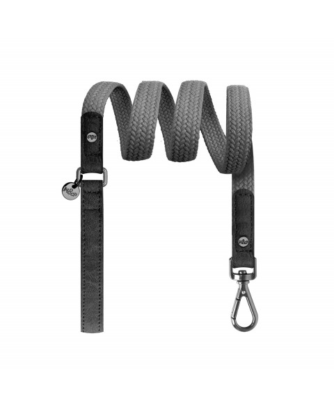 • Laisse en polyester tressé gris anthracite et imitation cuir Vintage Noir