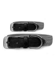 • Collier réglable en polyester tressé gris anthracite et imitation cuir Vintage Noir