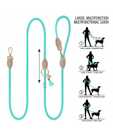 • Laisse Multifonction en polyester tressé et imitation cuir Vintage