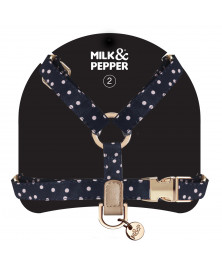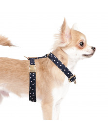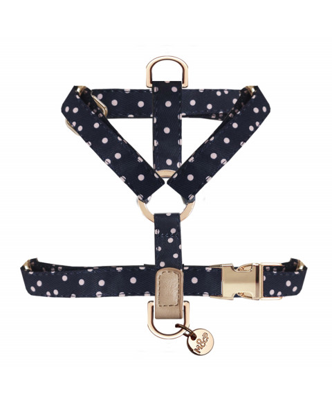 • Harnais "H" réglables en polyester imprimé marine à pois rose et imitation cuir vintage taupe
