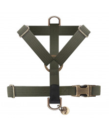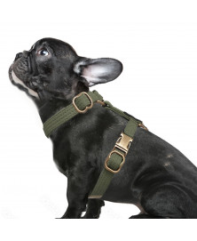 • Harnais "H" réglables en gabardine surpiquée Kaki ou beige et imitation cuir vintage noir