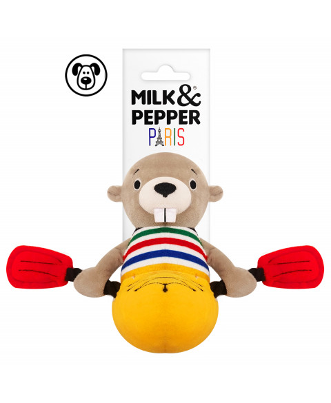 • Doudou castor kayakiste en peluche douce, vêtu d’un t-shirt aux couleurs olympique