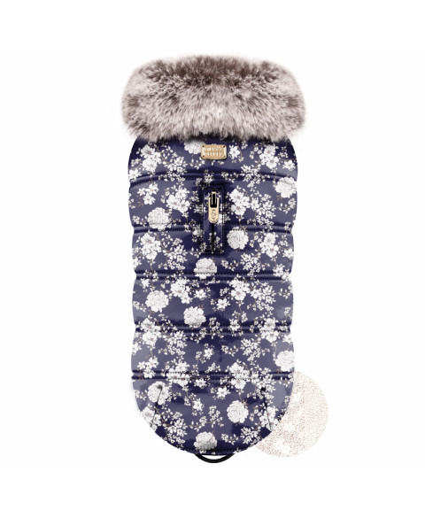 • Doudoune en polyester imprimé floral exclusif indigo/écru (traité déperlant )